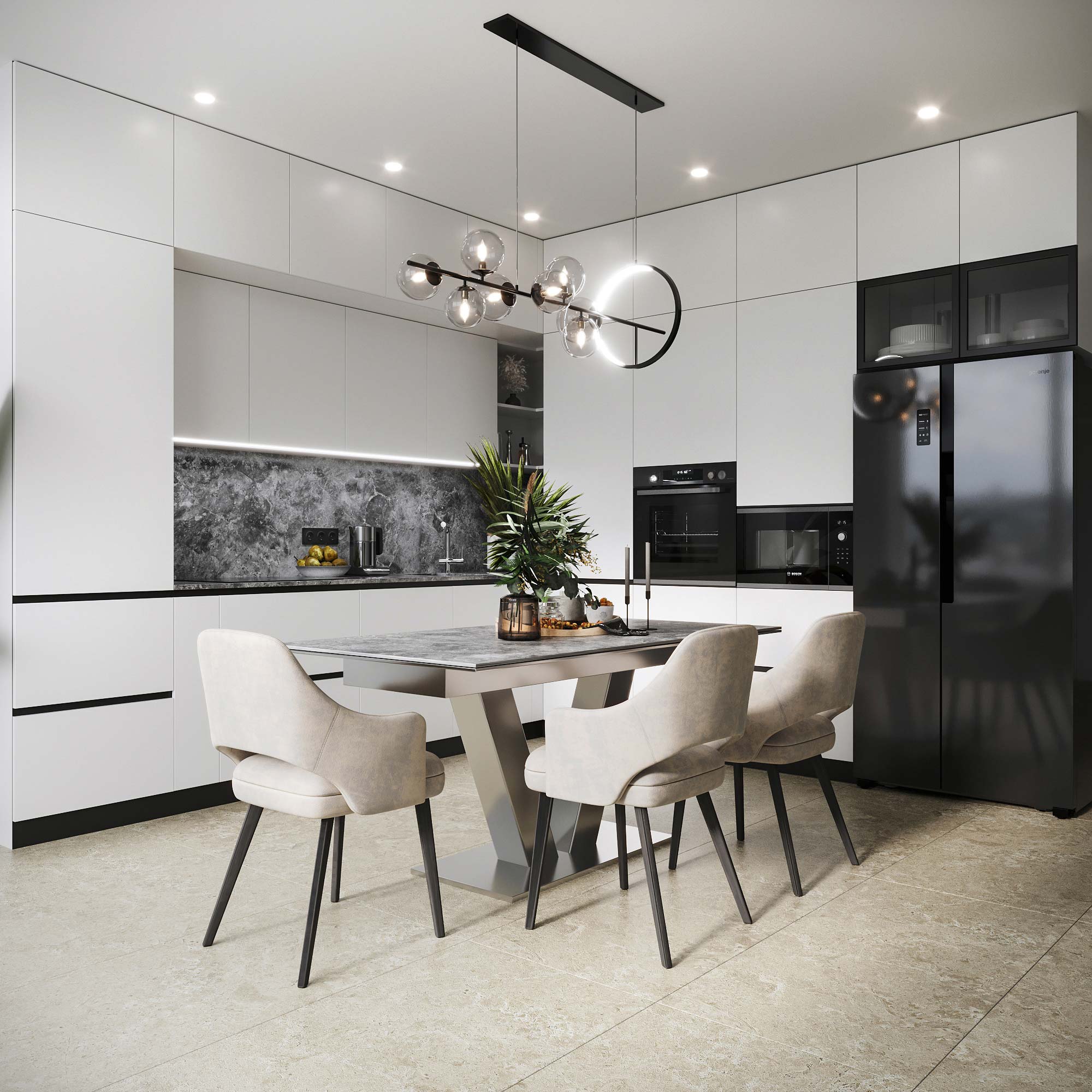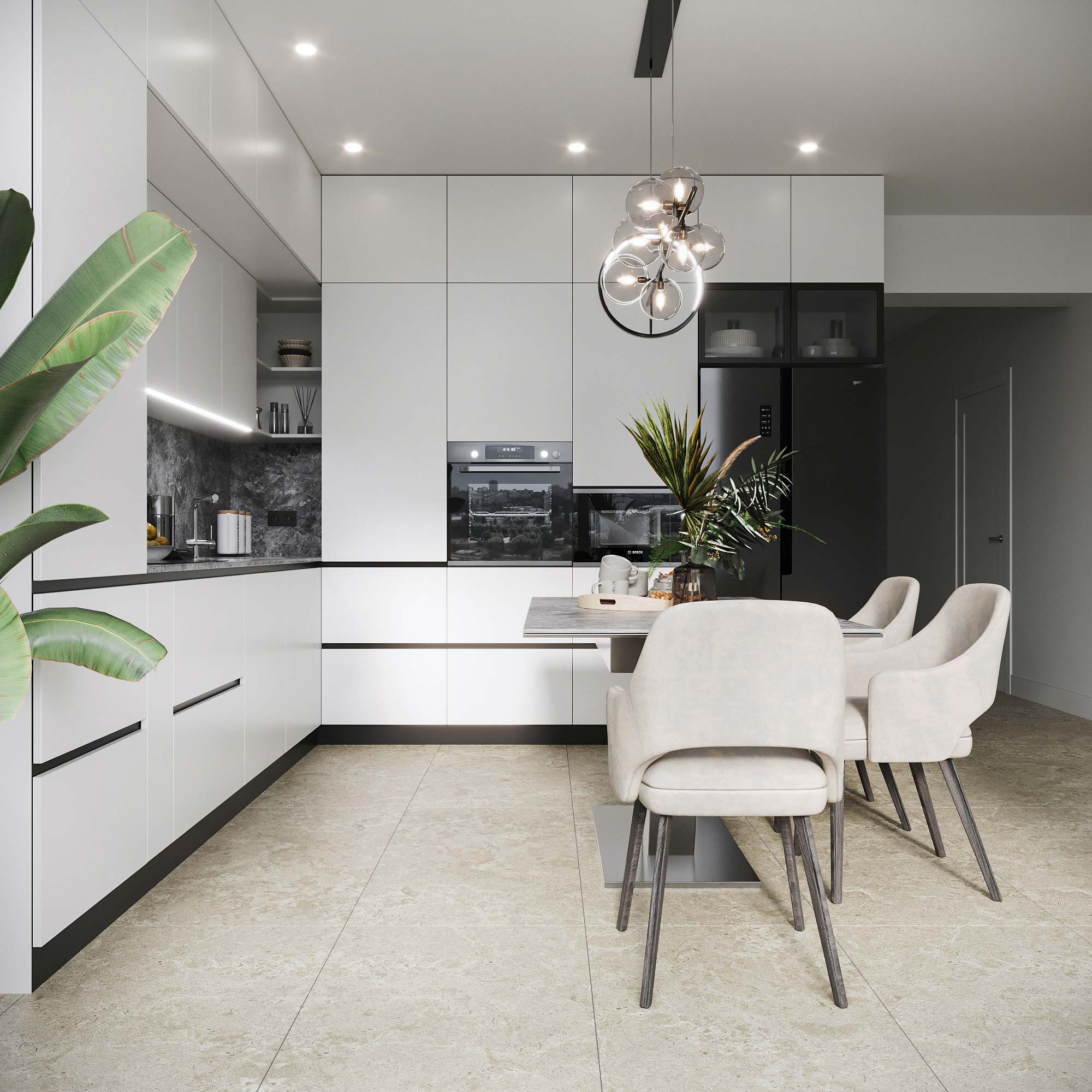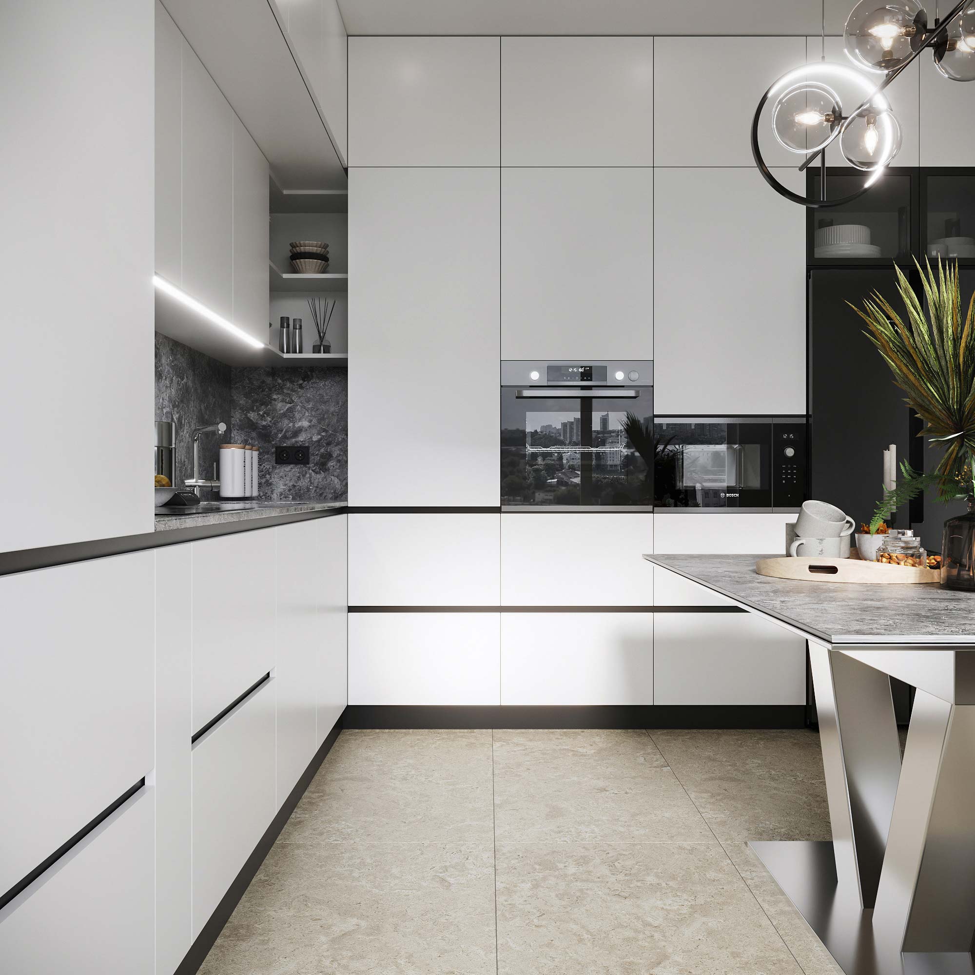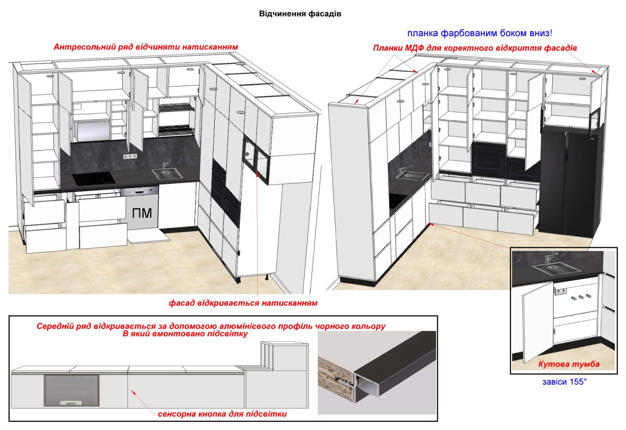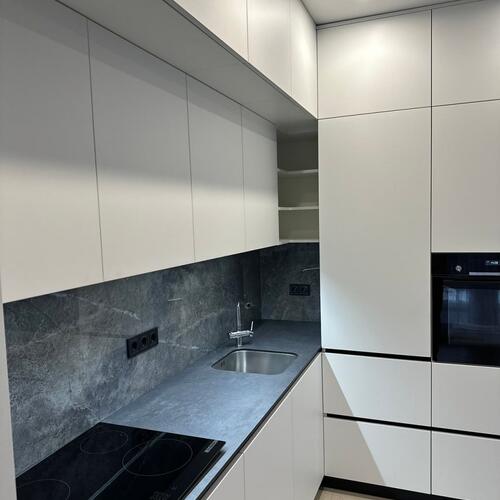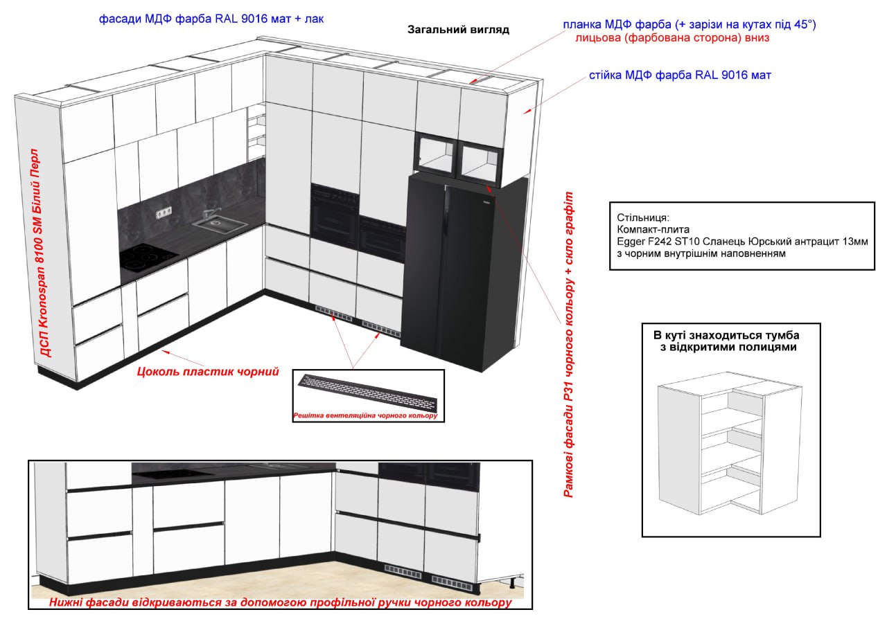 Фасады: МДФ краска RAL 9016 мат + лак